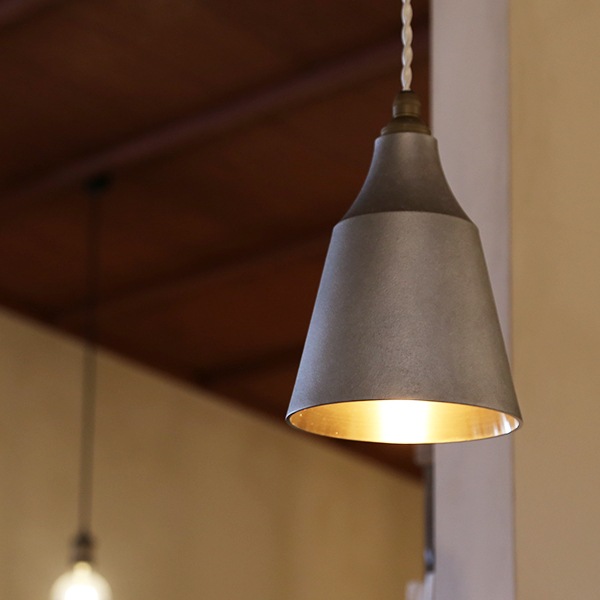 書斎 溶かした金属を砂で作った鋳型に流し込む製法でつくられた真鍮製のペンダントランプ。鋳物産業が盛んな富山県高岡市にて、一つ一つ丁寧につくられています。