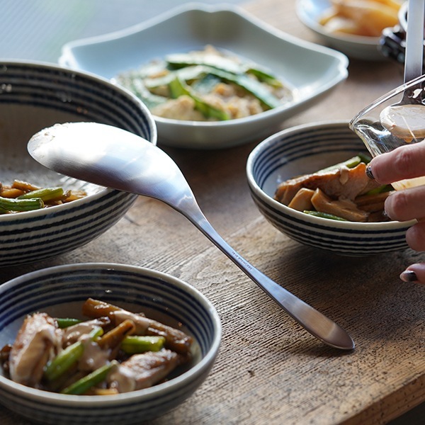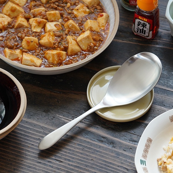 卓上で取り回しがしやすいサイズのとりわけスプーン22。皿部が大きく平らな部分が多いので、一度にたっぷりすくえます。