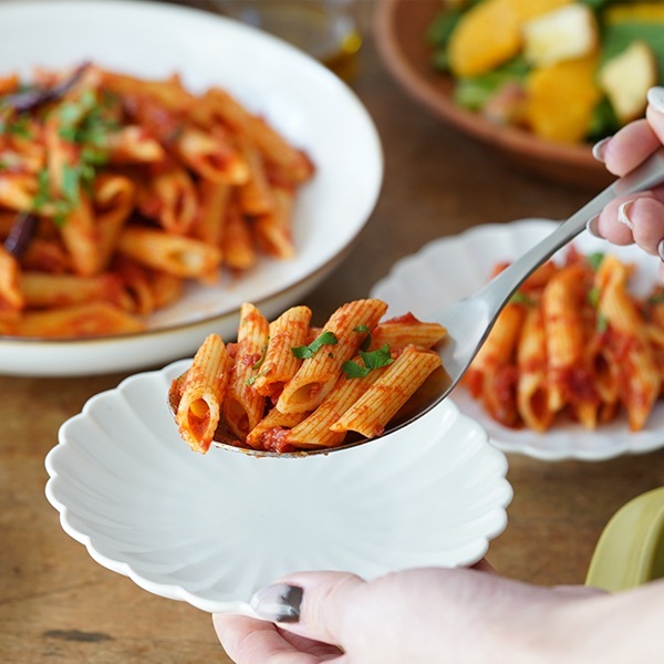 スプーンの縁部分で料理をカットしてから取り分けできるので、グラタンなどをキレイに盛り付けできます。