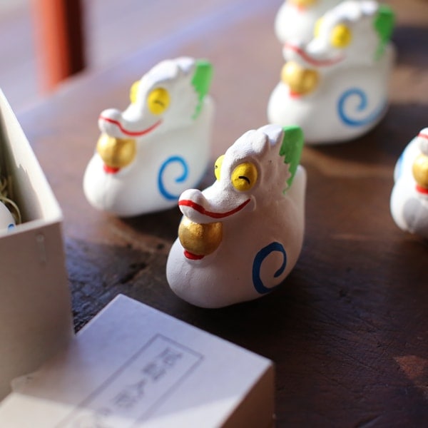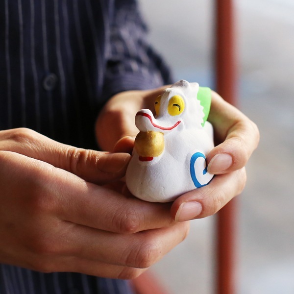 干支シリーズの辰は人形の中に玉を入れた土鈴で、振るとカランコロンと優しい音色をが聞こえてきます。ニヤリと笑う辰の笑顔にが可愛らしく、思わず笑みがこぼれます。宝珠も金色に光って縁起が良さそう。素朴で愛らしい辰の土鈴
