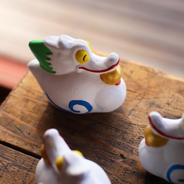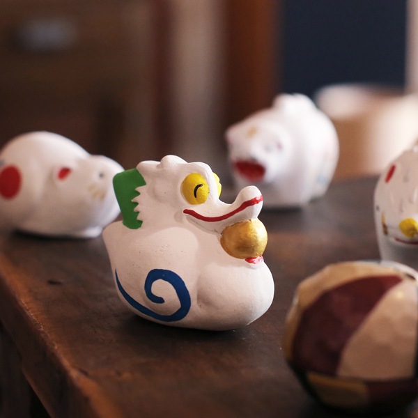 赤色や黄色、黄緑色といった春を感じさせる絵付け。手づくりの温もりあふれる人形は、たくさんの福を呼び込んでくれそうです。