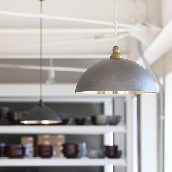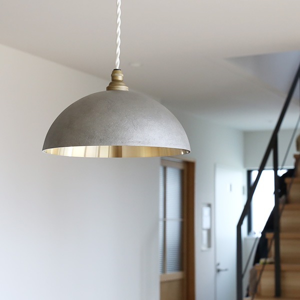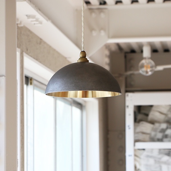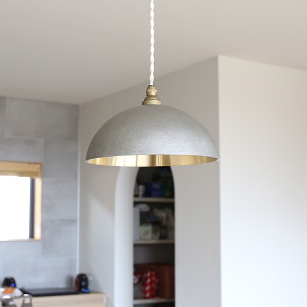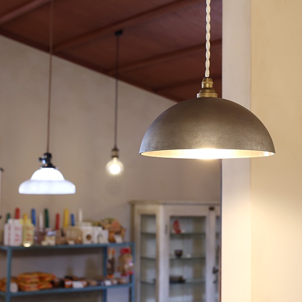 FUTAGAMIの真鍮製品は、型から取り出したままの鋳物の表面「鋳肌」をあえてそのままの風合いで残し、真鍮素材ならではの美しさを際立たせています。FUTAGAMI ペンダントランプ 半球 削り出し 銀ムラ