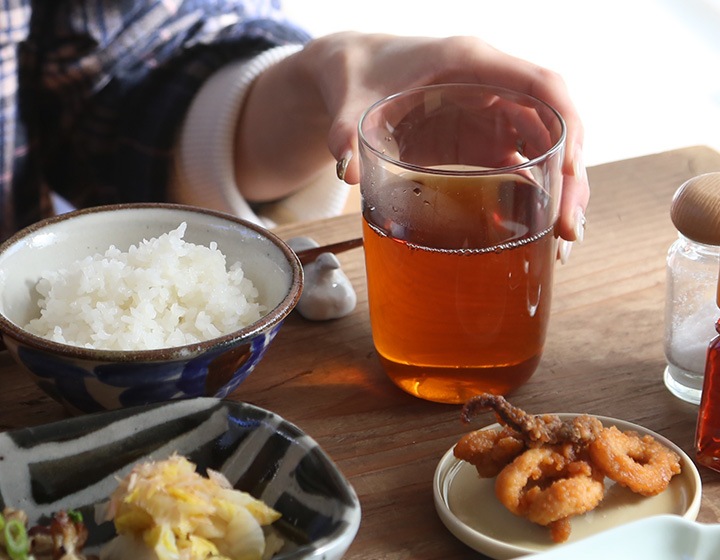 TGグラスは手に持っても重さを感じさせない軽い仕上がり。飲み物を入れても軽いグラスは、日々のちょっとした動作がしやすいです。
