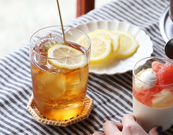 冷えたレモンティーとゼリーセット。冷たいデザートによく似合います。