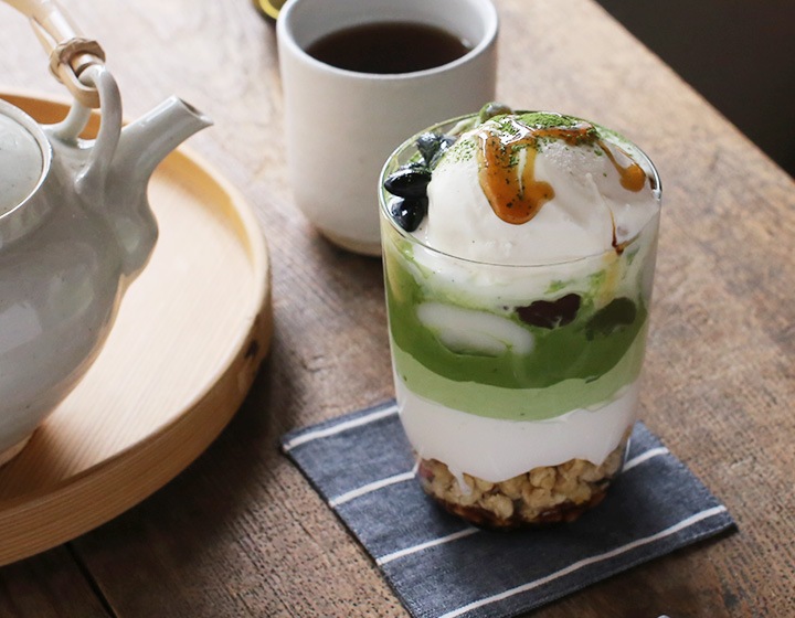 飲み物だけでなく、食べ物の器としても。パフェにしたり、ゼリーを入れて、グラスデザートにできます。