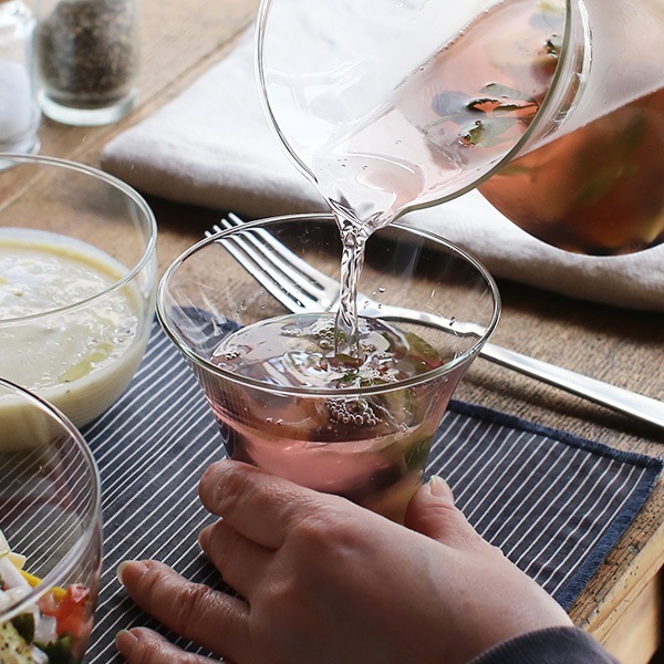 薄く作られたグラスは耐熱温度は約400℃、温度変化は約150℃まで耐えられるタフさがあります。電子レンジで温め直しはもちろん、蒸し器やオーブン、食器洗浄機にもお使いいただけます。