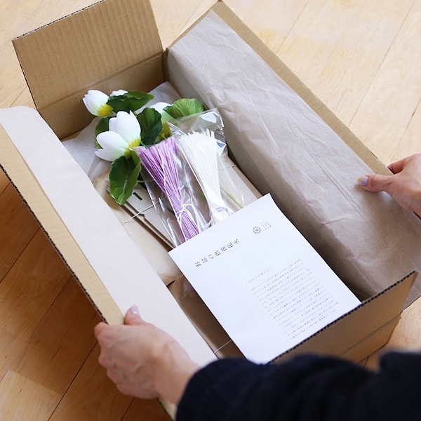 ?線香花火 白(100本)、紫(100本) ?法立(2台) ?造花(2本) ?造花固定用モール(4本)