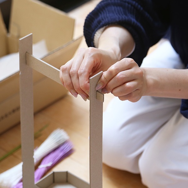 飾り台は紙製でできており、軽く、組み立て簡単。専用のボール箱にまとめられているのでかさばらず、ご進物にもぴったりです。