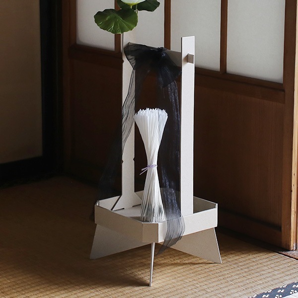 白の和紙で包まれた線香花火は、飾り台に立てかけることで、花火をお供えすることができます。