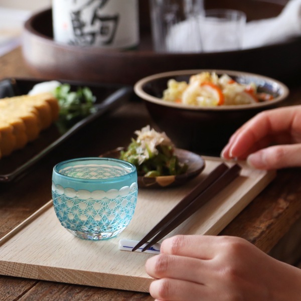 繊細で細かな菊繋ぎがキラキラと輝き、お家での晩酌を贅沢にしてくれます。映り込む菊模様の美しさ