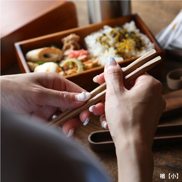 コンパクトでお弁当のお箸にぴったりです。木の自然な風合いと、手にスッと馴染む肌触りがなんとも気持ち良く愛着も沸いてきて、学校や会社に持って行けば、お昼の時間が楽しみになりそう。