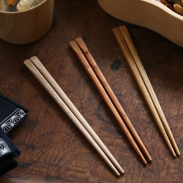 ウレタンは4層に塗り、特に白くなりやすい箸先は、もう一層重ね塗りした5層塗装り。丈夫な仕上がりになっており、食器と同じように、一般的な中性洗剤と柔らかいスポンジで洗うことができ、特別なお手入れは必要ありません。(つけ置きは避けるようにしてください。)選べる3種類の樹種