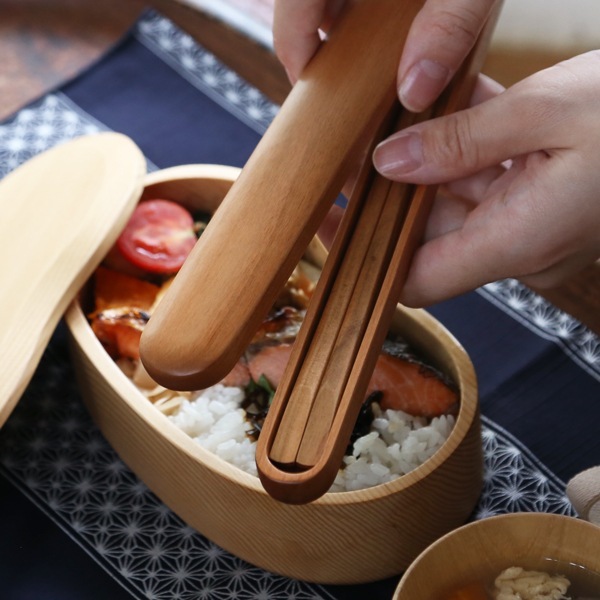 木の自然な風合いと、手に馴染む肌触りがなんともいえず気持ち良く、学校や会社に持って行けば、お昼の時間が楽しみになりそう。どんな柄のお弁当包みにもマッチして見栄えもばっちりです。