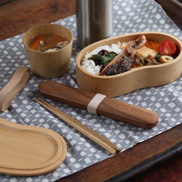 木の自然な風合いと、手に馴染む肌触りがなんともいえず気持ち良く、学校や会社に持って行けば、お昼の時間が楽しみになりそう。どんな柄のお弁当包みにもマッチして見栄えもばっちりです。