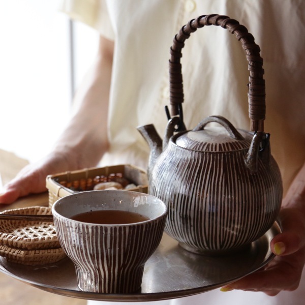 素朴な風合い、十草模様の土瓶