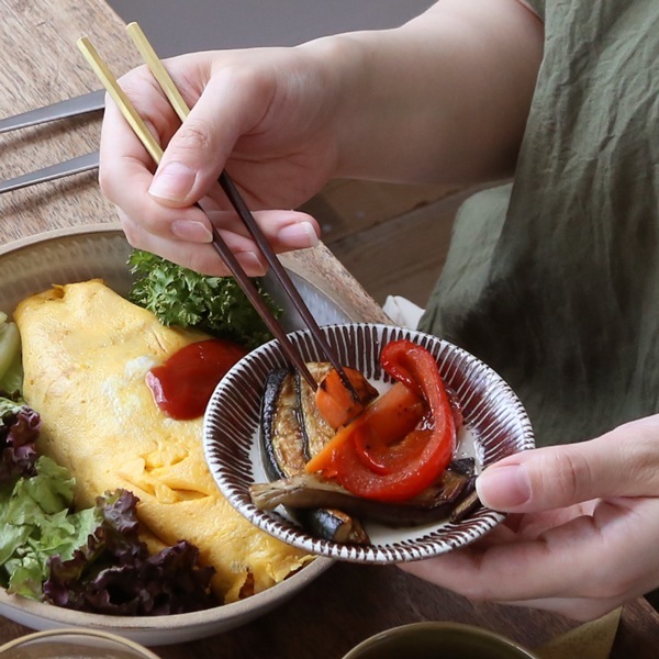 持ち手部分が金属なので、やや重心が上より。持ち手から箸先まで全体的に細身なつくりで、使う人の所作を美しく見せてくれます。