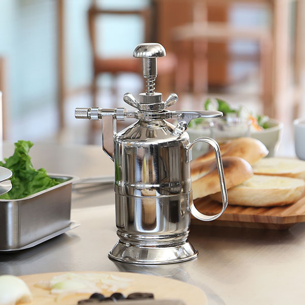 東屋が手掛ける美しい霧吹き。金属の光沢と機械的な佇まいは、見ているだけでもワクワクします。