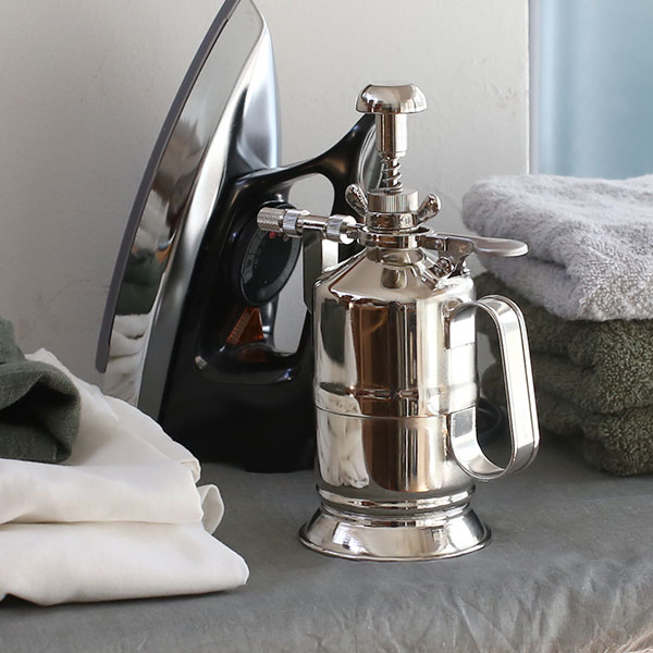 シャツのアイロンがけに もともとはクリーニング屋さんで使われていた霧吹き。シャツの小ジワはもちろん、スチーム機能付きのアイロンでも取りにくいガンコなシワに使うと、きれいに仕上がります。