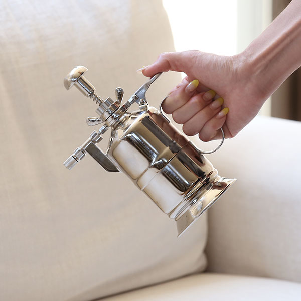 真鍮製のタンクはアルコールも入れることができ、おうちの中の除菌はもちろん、インフルエンザやコロナウイルスなどの消毒グッズとしてあると心強いです。使い方