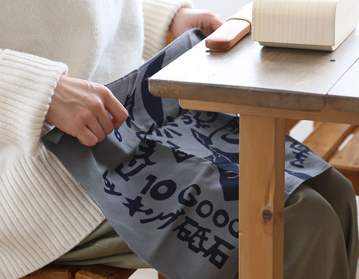 使われている生地は、愛知県知多地域で織られている知多木綿。歴史は古く、江戸時代16世紀には手ぬぐいや着物の反物として高い評価を受けていました。手ぬぐいを育てる