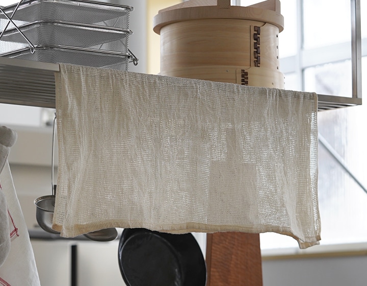 網目状に織られた蒸し布は蒸気の通りが良く、せいろの底に敷くことで、余分な水分を吸収し、ふっくらとより美味しい料理に仕上げる事が出来ます。