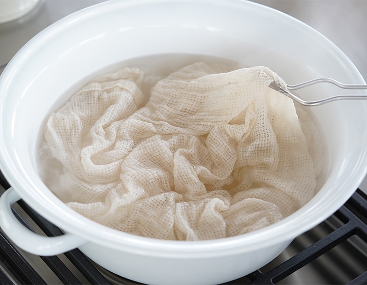時々で構いませんので、5分ほどお湯で煮洗い(煮沸消毒)すると殺菌効果もありおすすめです。油汚れや色移りが気になる場合は、重曹や酸素系漂白剤もお使いいただけます。