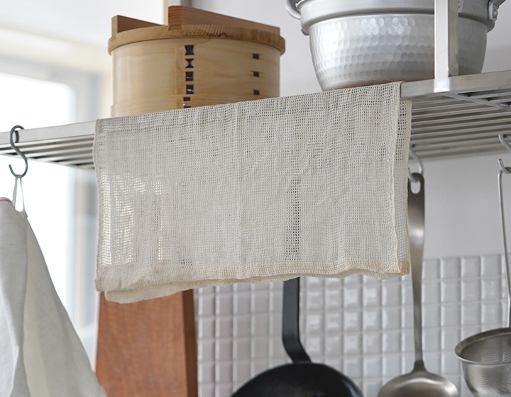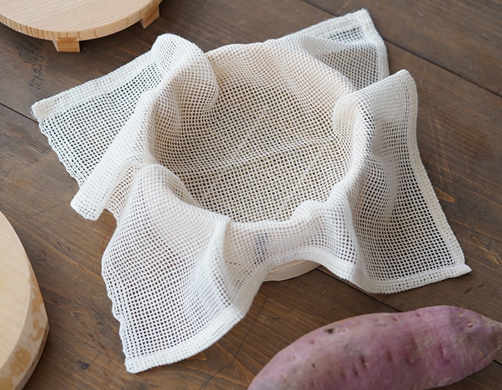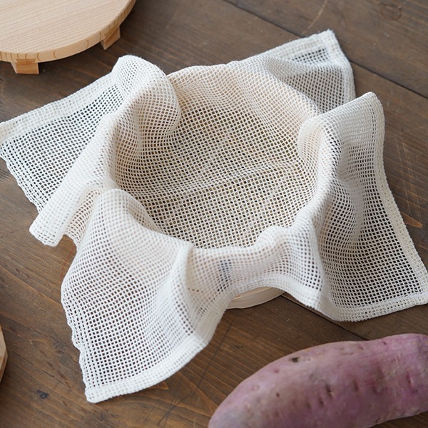 網目状に織られた蒸し布は蒸気の通りが良く、せいろの底に敷くことで、余分な水分を吸収し、ふっくらとより美味しい料理に仕上げる事が出来ます。