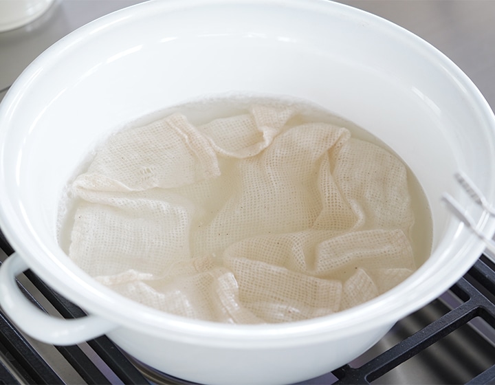 時々で構いませんので、5分ほどお湯で煮洗い(煮沸消毒)すると殺菌効果もありおすすめです。油汚れや色移りが気になる場合は、重曹や酸素系漂白剤もお使いいただけます。