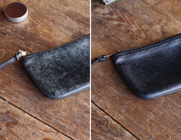 こってり塗りすぎると、ベタつきや革が白っぽくなることがありますが、その場合は布やブラシでしっかり磨きこんでください。