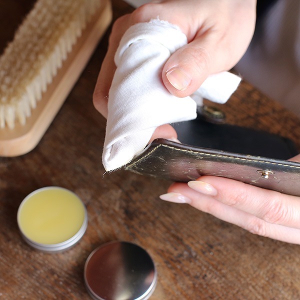 木の知識を生かして作り出された木工用みつろうクリームを、革製品にも使いやすいよう仕上げられています。乾燥によるひび割れ、劣化から革製品を守り、自然なツヤを出します。