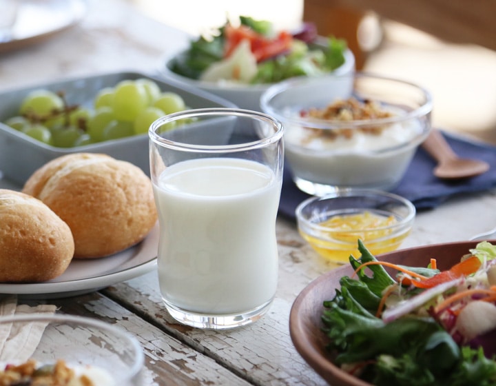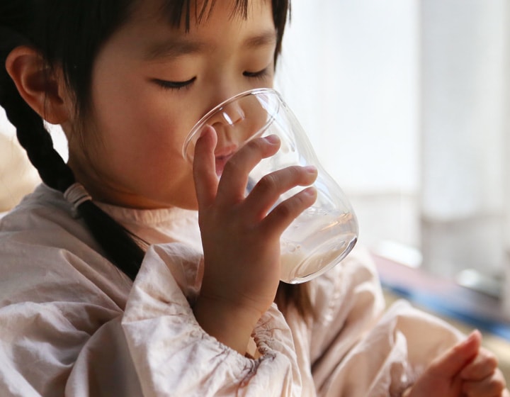 業務用ガラスを手がける老舗ガラスメーカーの技術でつくられた、子どもの小さな手でも握りやすい形が特徴。ガラスの厚みもあり、うっかり落としても割れにくい仕上がりになっています。