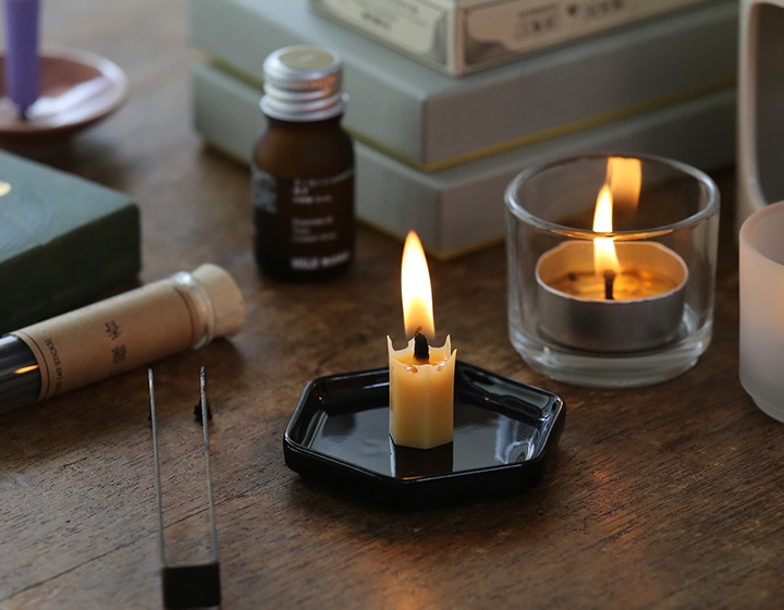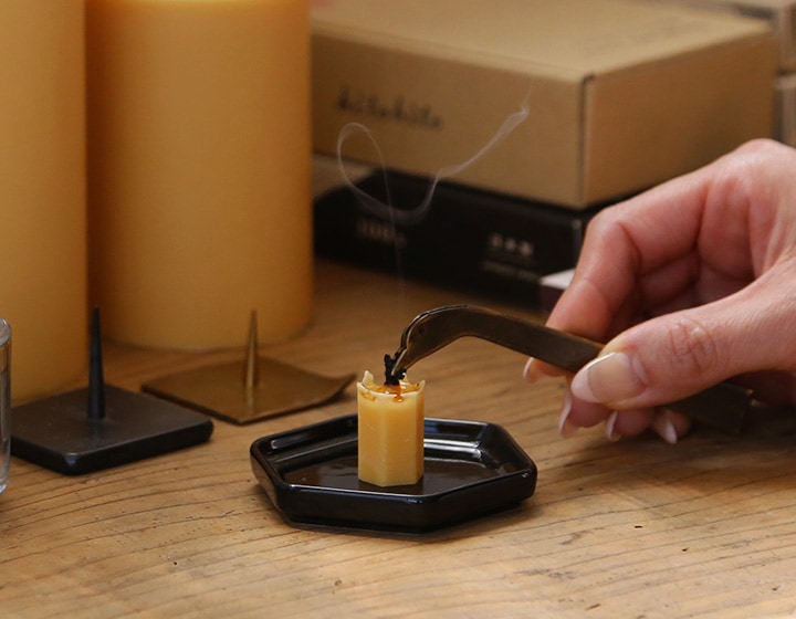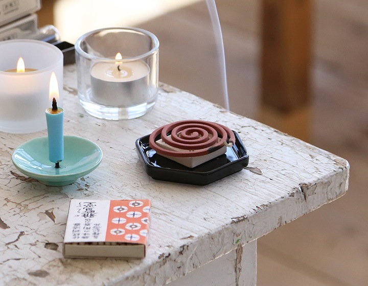 うずまき型のお香 燭台のような針が無いため、和ろうそくやテーパーキャンドルを立てることはできません。置き型のキャンドル、お香、アロマストーンなどの受け皿としてお使いいただけます。