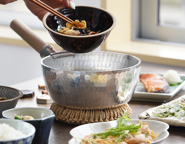 大正13年の創業時から代々受け継がれてきた技巧が宿る、姫野作.のアルミ行平鍋は、見た目の美しさもさることながら機能性も抜群です。