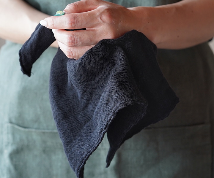 銀ねず/墨 29×25cm 8重 - 8重仕立てで吸水性抜群。二つ折りや四つ折りにたたんで机を拭けば、力要らずで汚れをしっかり拭きとれます。蚊帳ふきんシリーズで一番の人気アイテムです。