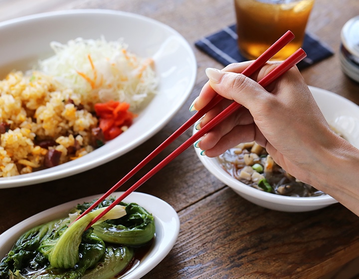 焼き飯定食 【トマト】 彩り豊かな夏野菜をはじめ、瑞々しい野菜たちをモチーフにしたユニークなお箸。