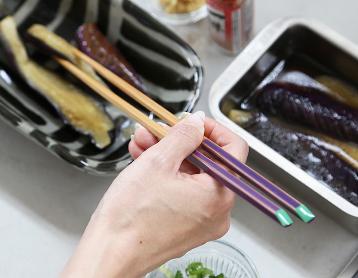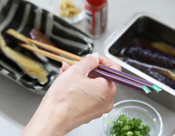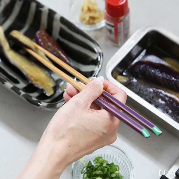 【ナス】 彩り豊かな夏野菜をはじめ、瑞々しい野菜たちをモチーフにしたユニークな菜箸。