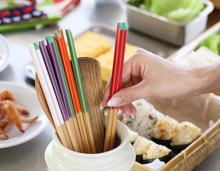 元気な色合いの菜箸はキッチンを楽しげな雰囲気にしてくれます。