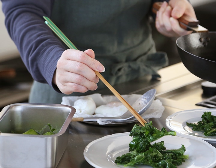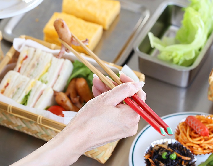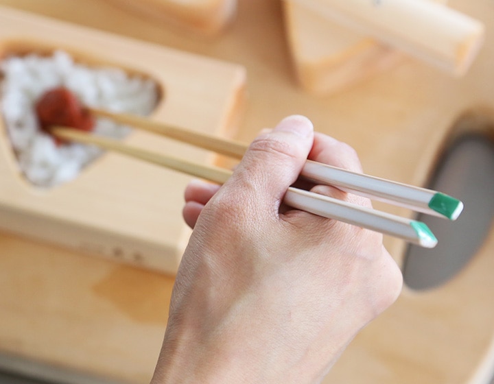 菜箸は全体的にやや細めで、こまかな作業がしやすい仕上がり。箸先は具材を摘まみやすいように四角く削られています。