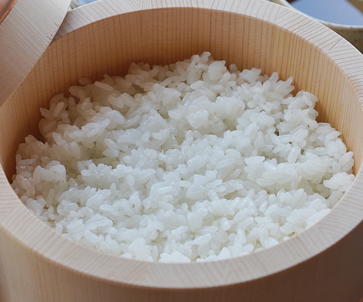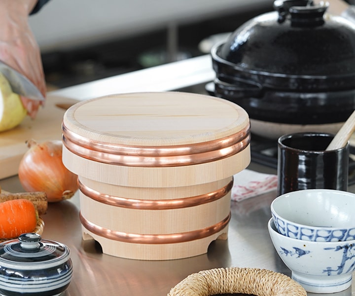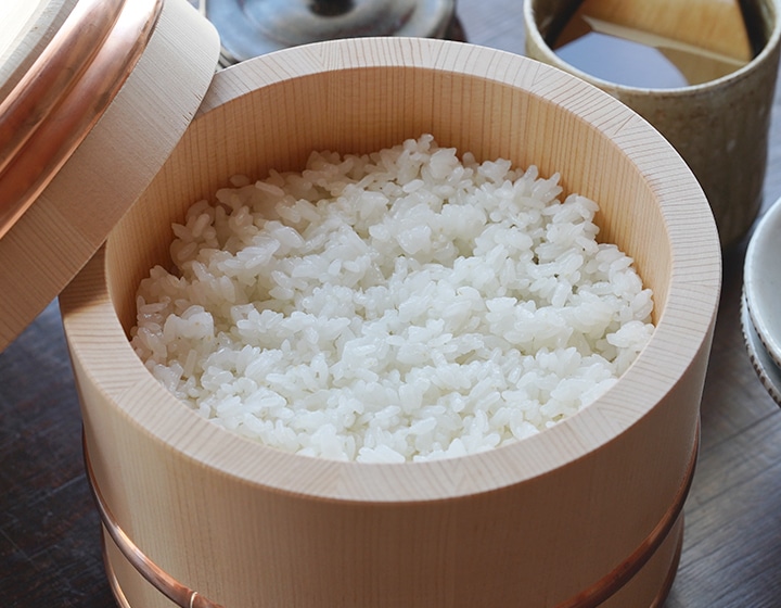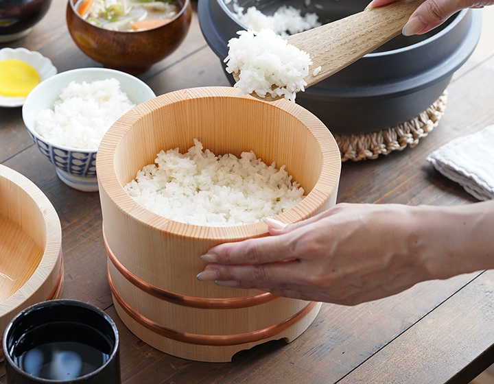 伝統的な木のお櫃は、炊きたてご飯の余分な水分を吸収してくれます。