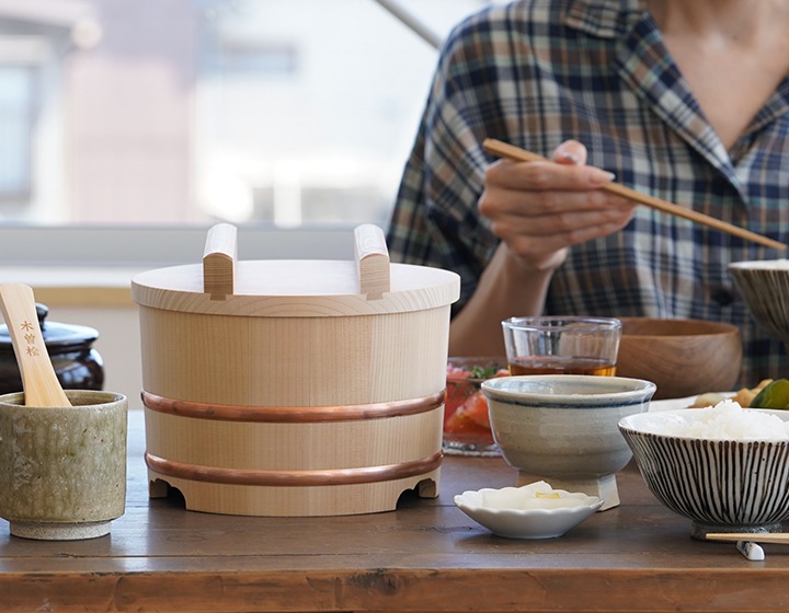 伝統的な木のお櫃は、炊きたてご飯の余分な水分を吸収してくれます。