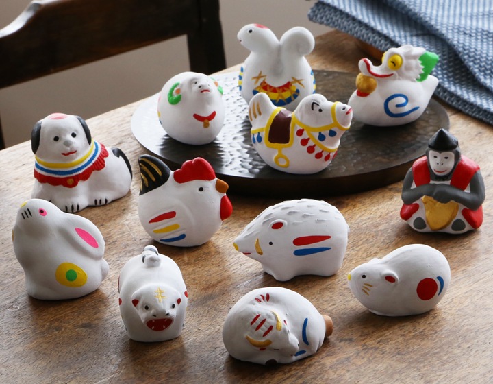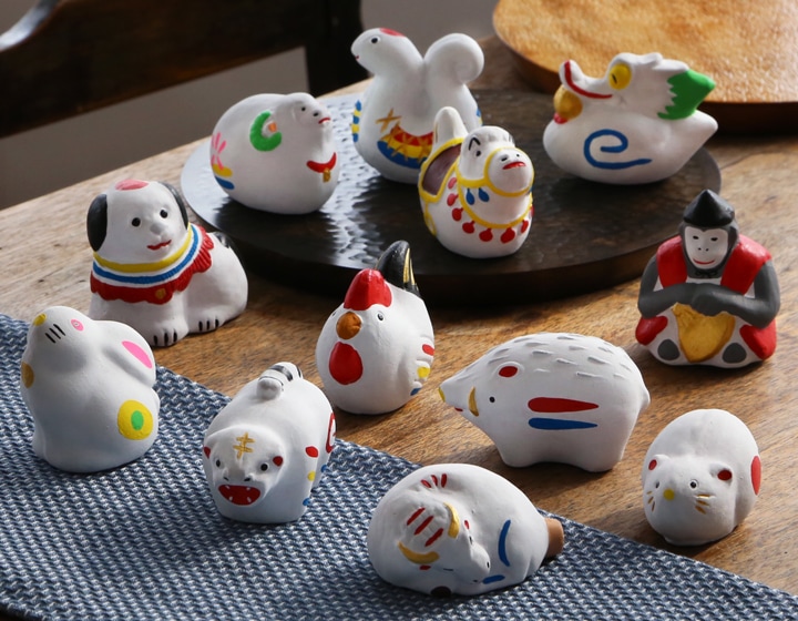 干支の置物は、その年の家内安全を祈る縁起物。ユニークな表情とカラフルな絵付けは、玄関や机に飾れば、明るく楽しい雰囲気になります。