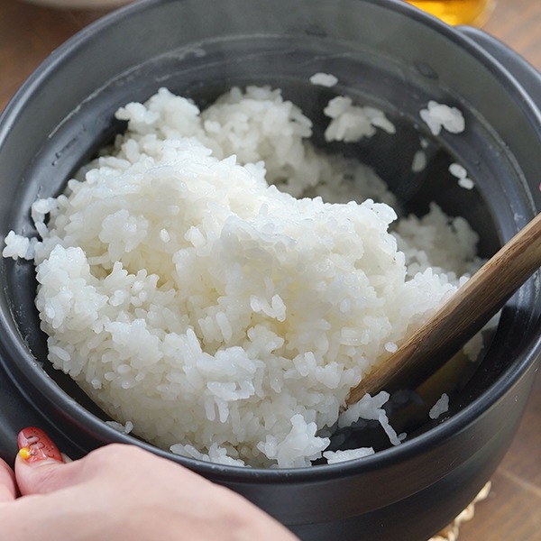 土鍋は熱伝導率が低く、加熱すると緩やかに温度が上昇するため、お米そのものの甘みをじっくり引き出し、ふっくらとツヤのある、おいしいごはんに仕上げてくれます。