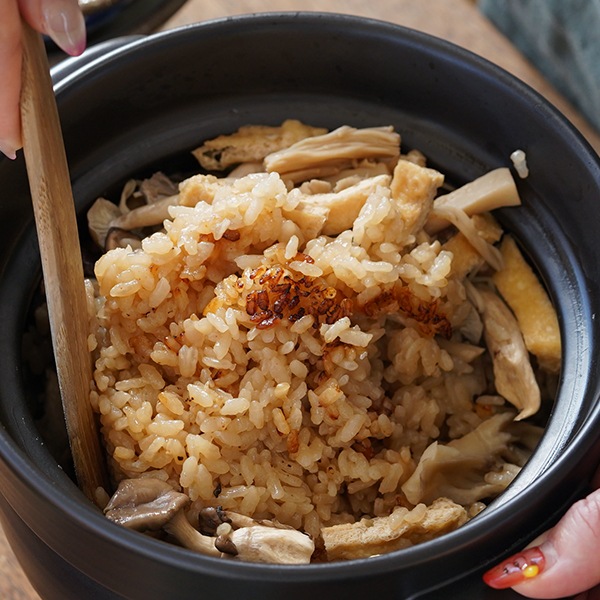 土鍋でご飯を炊く楽しみの一つに、香ばしいおこげがあります。おこげを作りたい場合は最後の仕上げ、弱火の時間を1~2分延ばしてください。鍋底にお米が少し焦げ付き、香ばしい風味が生まれます。