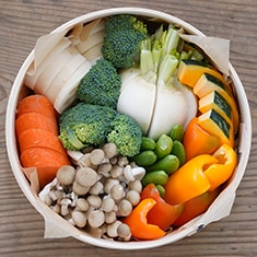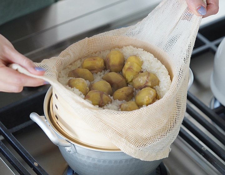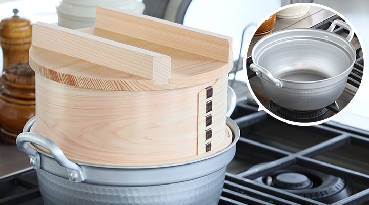 蓋から蒸気が抜けるようになっている中華せいろに対し、和せいろは厚みのある天然木の蓋でしっかりと蒸気を閉じ込めます。密度が濃く熱い蒸気で食材全体を均一に蒸しあげるため、中華せいろよりも短い時間で蒸すことができます。