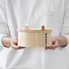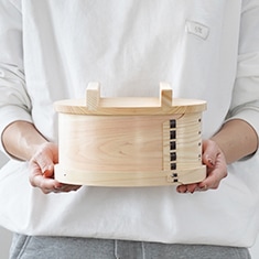 樹齢100年~300年を中心とする木曽の良質な原木を利用し、毎日の暮らしの中で生まれた伝統的な木製品から、新しい視点でとらえた木のクラフト製品まで幅広く製造する「山一」。唯一、再生可能な資源である木を、長い時間をかけ育て、伐採し、また植林するというサイクルの中で「木の香りと優しさを生活にする」ことをテーマに商品づくりを進めています。ミニ和せいろ ラインナップ-