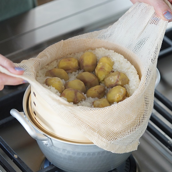 別売の蒸し布を使うと便利(18使用)