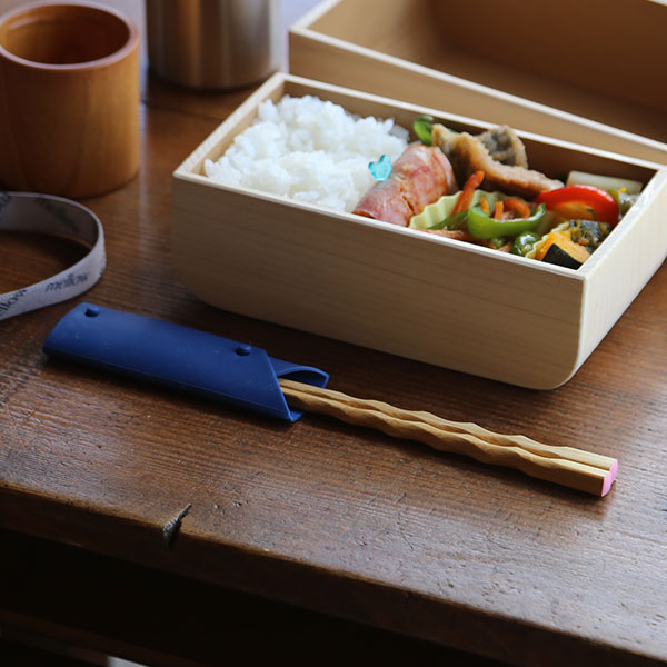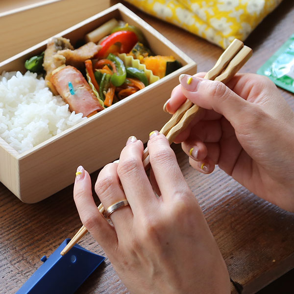 お弁当としてもお使いいただけるきずな箸21cmは、納まりやすくコンパクトに持ち運びできます。