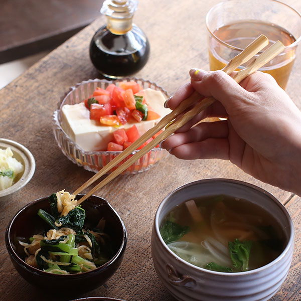 竹で作られたお箸は丈夫で軽く、手先のようにお使いいただけます。