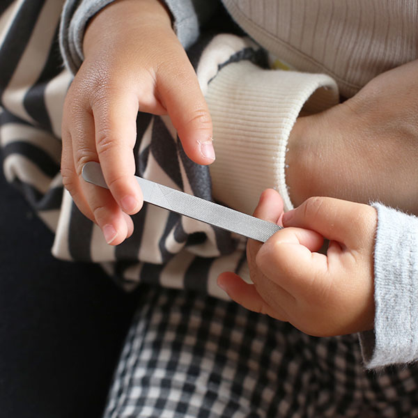 また、爪切りハサミがこわい…というお子様にも爪ヤスリがぴったり。先が丸いため当たりがやさしく、爪を少しずつ削って整えるので、誤って指を切ったり、うっかり深爪になることも少ないです。