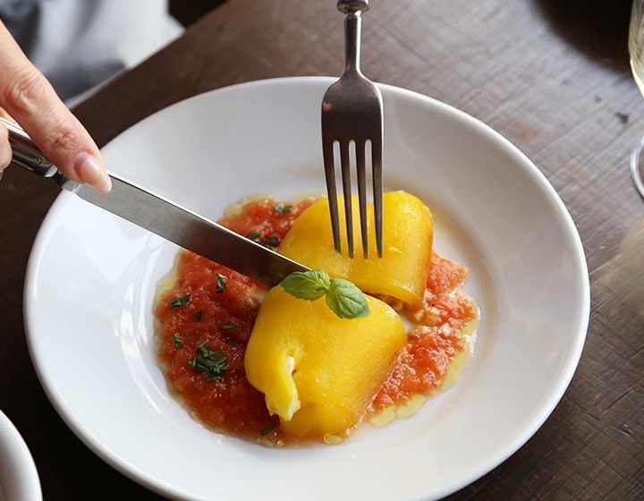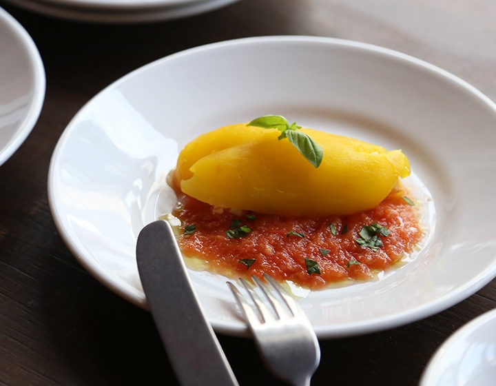 フチが厚めのチボリは、簡単な盛り付けの料理もかっこよく見える仕上がりです。
